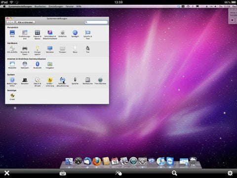 Die Steuerung des entfernen Computers mit dem Touchscreen des iPad gestaltet sich einfach. Dabei wird der Mauszeiger mit dem Finger verschoben. Für weitere Funktionen oder zum einblenden der Tastatur stehen verschiedene Symbole am Bildschirmrand zur Verfügung. Auch Computer mit mehreren Bildschirmen werden unterstützt.