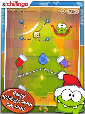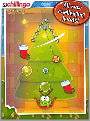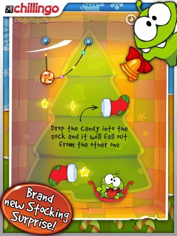 Die zusätzlichen 25 Level gegenüber der Vollversion von Cut the Rope sind passend zur Weihnachtszeit gestaltet und bietet auch eine witzige neue Extra-Funktion.
