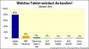 Eine neue Umfrage hat rausgefunden, dass die Nachfrage nach Netbooks weiter sinkt und die nach Tablets PCs steigt. Außerdem kontrolliert Apple den Tablet-Markt, mit einem Marktanteil von satten 95%! … [Weiterlesen...] Über80% wollen ein iPad und 95% haben ein iPad