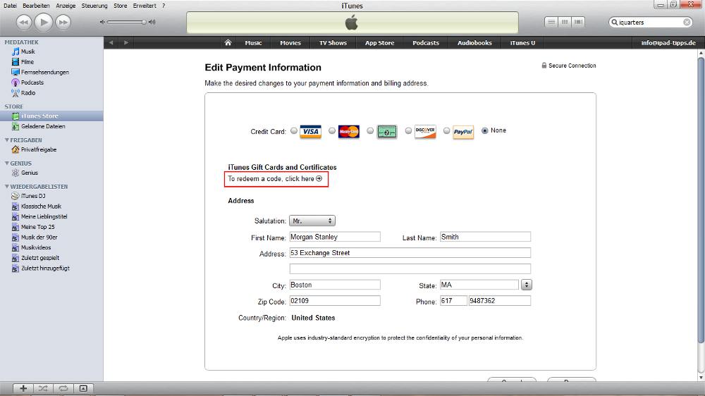 - Eine E-Mail Adresse, die noch nicht bei ITunes verwendet wurde