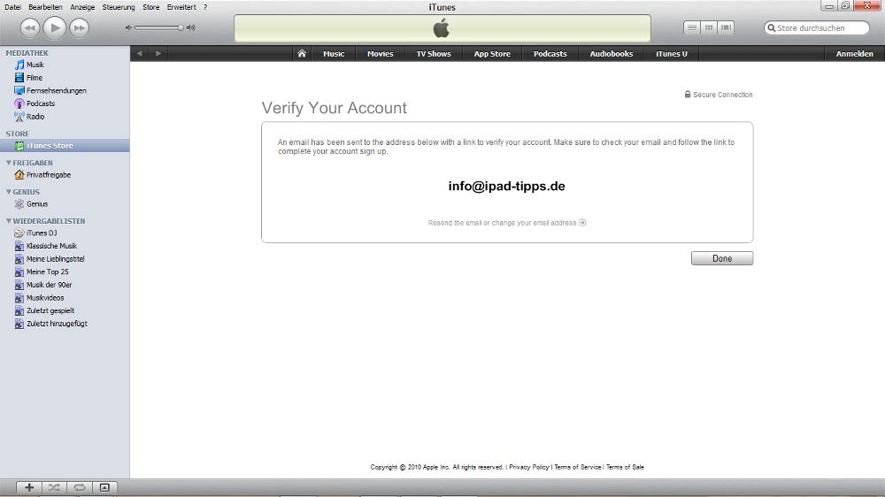 - Nun braucht man nur noch auf die Bestätigungsmail warten, um so seinen US iTunes Account zu aktivieren.
