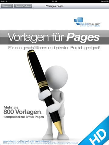 Von Urkunde bis Abmahnung, von Kindergeburtstag bis Arbeitsamt, Vorlagen für Pages umfasst mittlerweile über 900 Text- und Design-Vorlagen für so ziemlich jede Gelegenheit. Die Vorlagen können in Pages oder in anderen Office-kompatiblen iPad Apps verwendet werden.