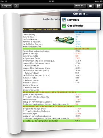 Bei Vorlagen für Numbers stehen die gleichen Funktionen wie bei den Vorlagen für Pages zur Verfügung. Allerdings bringt die App nur rund 130 Vorlagen aus den Bereichen Finanzen, Beruf & Betrieb, KfZ & Privat sowie Schule & Uni mit.